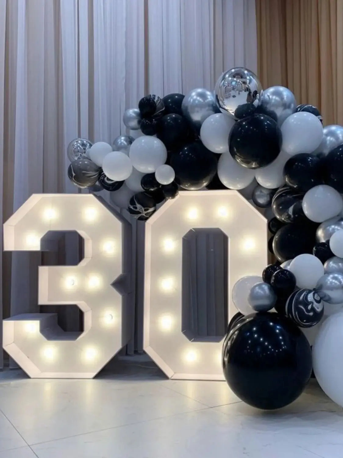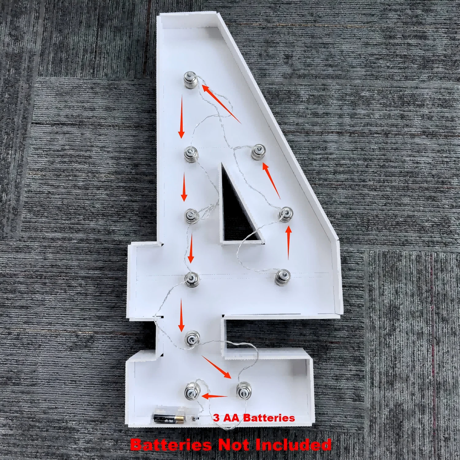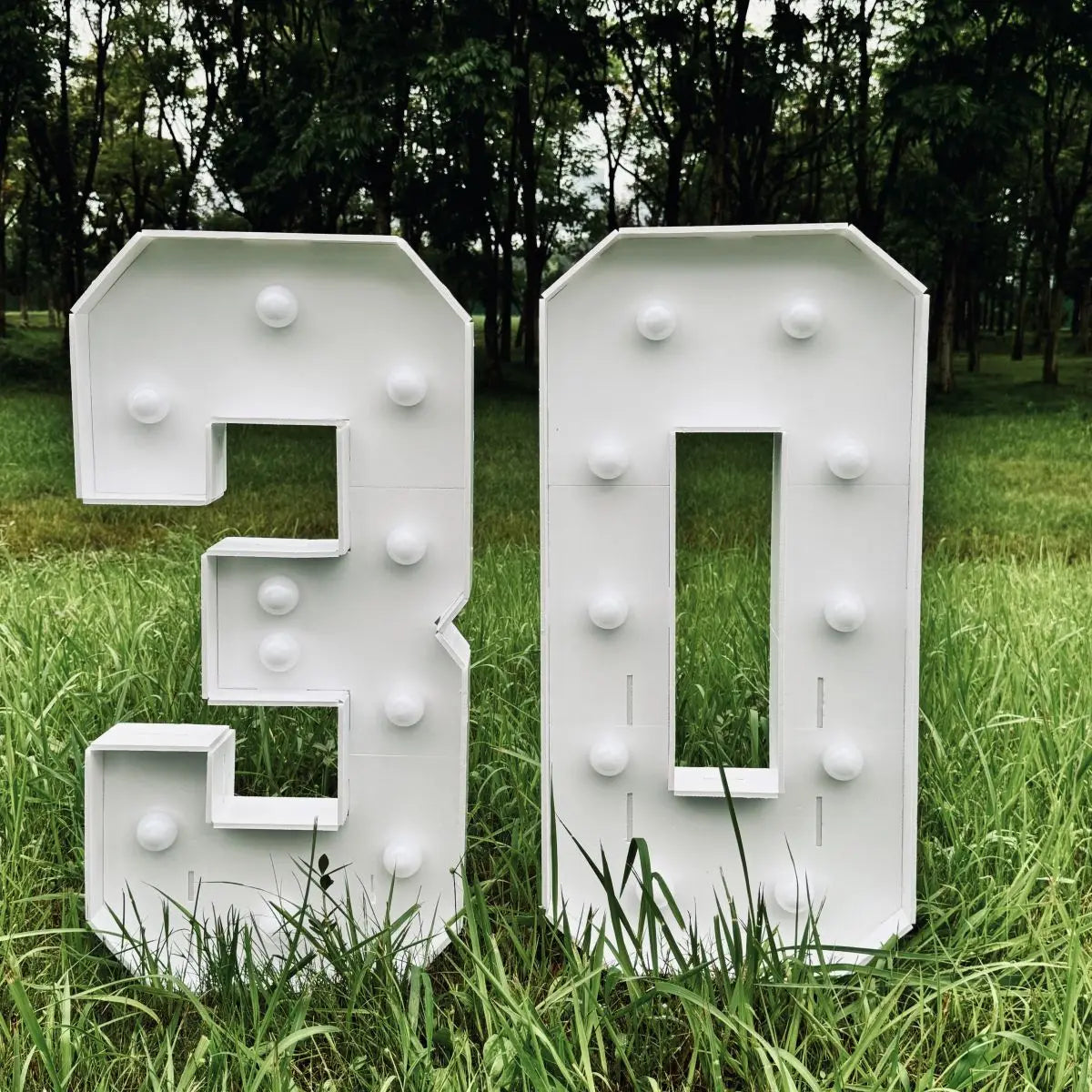 1Pc 73cm/28.7inch Light Up Digital Marquee Frame White Lights KT Board Number 0-9 Plug-in KT Board With Bracket Party Decorative