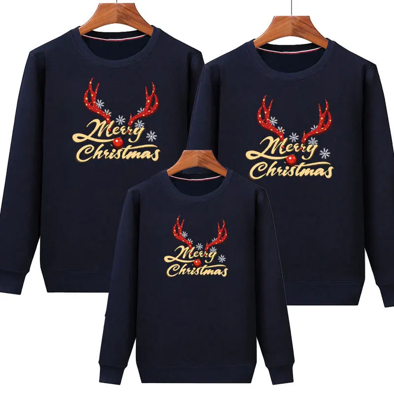 Christmas Family Matching Outfits Cartoon Deer Print Hoodies Casual O Neck Sweatshirt Mommy and Me Clothes Xmas Family Look
