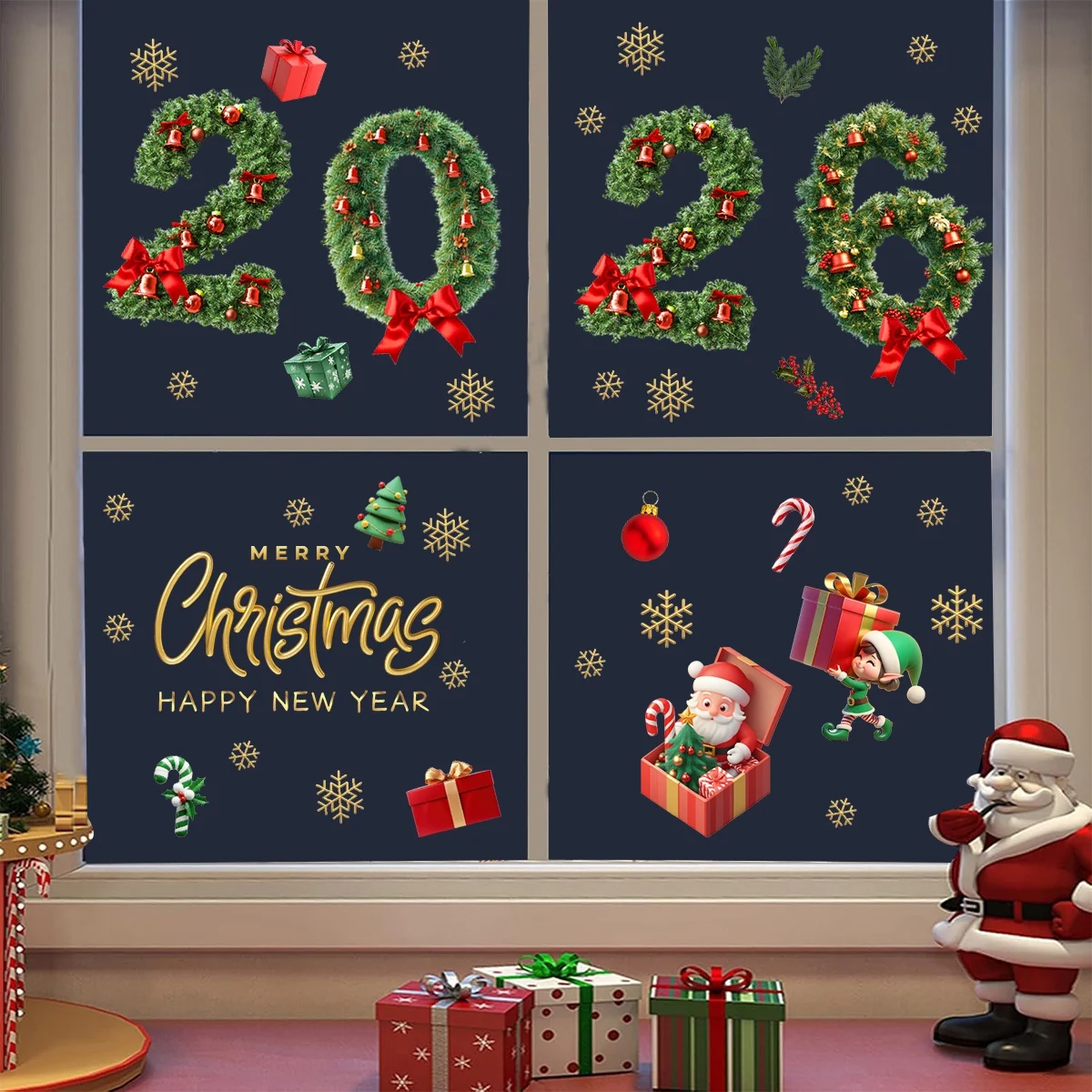 2026 Christmas Window Stickers Xmas Wall Sticker Decals Kid Room Wall Merry Christmas Decorations for Home 2025 New Year Sticker