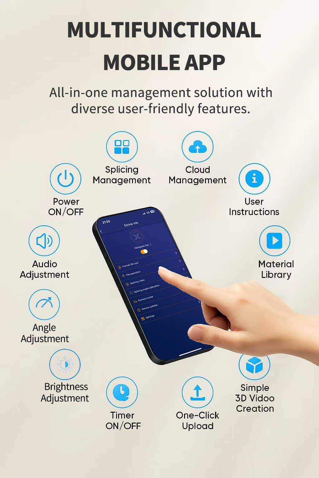 You can upload or update content via mobile APP, computer software connected to the device’s WiFi, or cloud platform.