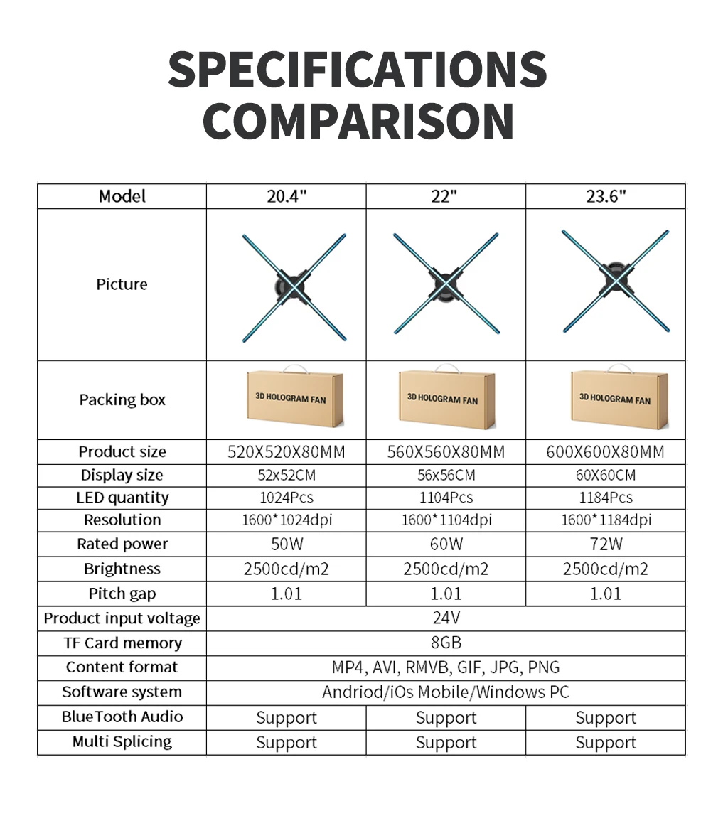 Name: 3D Hologram Fan 20.4" 22" 23.6" LED Holographic Display