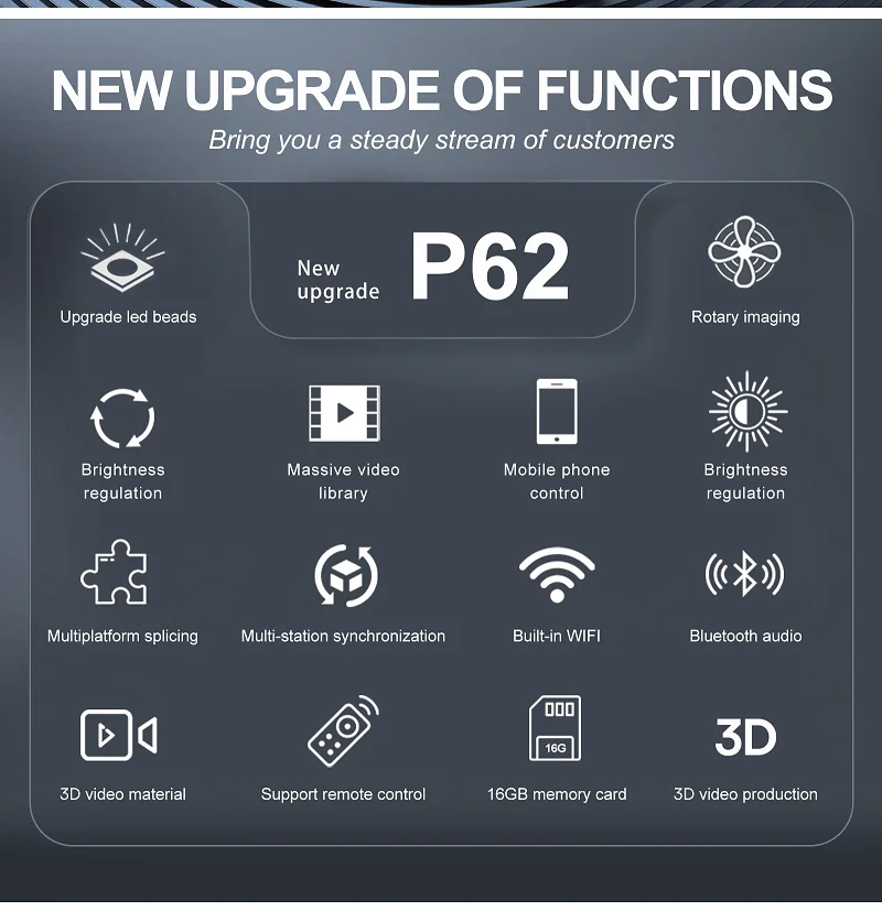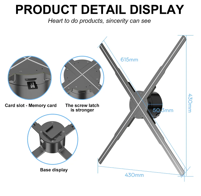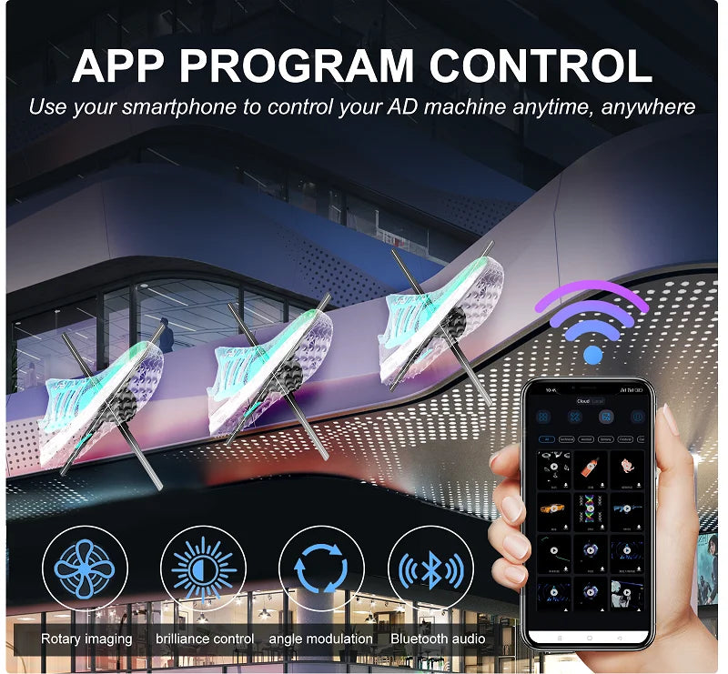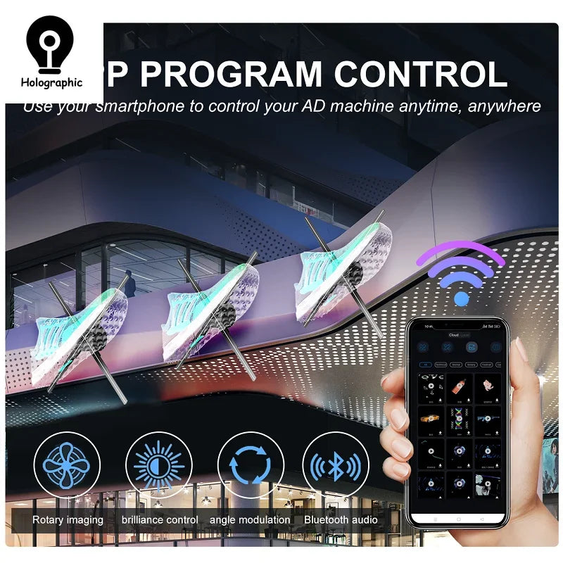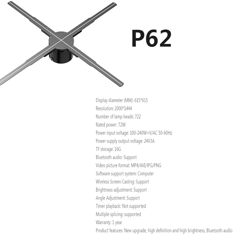 62cm 3D Fan Hologram Projector Wifi LED Sign Remote Control 3D Holographic Lamp Player Advertising Display Logo Light