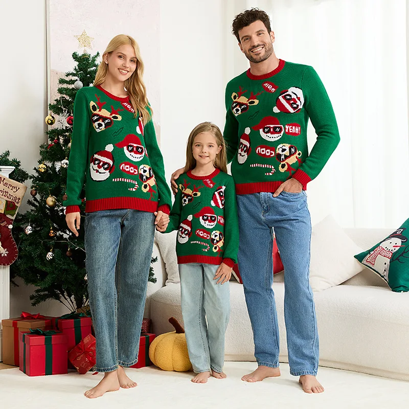 Christmas Knitted Sweater Women Fashion Christmas Party Parent-child Outfit Long Sleeve O Neck Knitwear Pullover Sweaters 2025